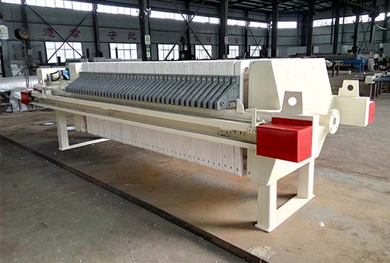 廂式壓濾機進料的粒度組成在濾料中產生負水頭或空氣阻力。一個很好的辦法是保持過濾器濾料表面水深1.5米,有利于提高壓濾效果,但進料濃度不宜過高。減少過濾材料中氣泡的積聚時間。