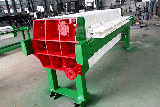 板框壓濾機結構功能,板框壓濾機由交替排列的濾板和濾框構成一組濾室。濾板的表面有溝槽,其凸出部位用以支撐濾布。濾框和濾板的邊角上有通孔,組裝后構成完整的通道,能