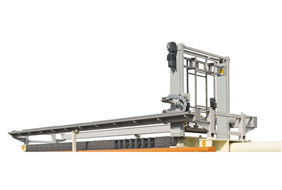 用于壓濾機濾板上包裹濾布的在線自動清洗裝置。當濾布出現堵塞癥狀時,利用高壓水對濾布進行自動清洗和撫平。整機動作采用電機驅動,主要由行走電機和升降電機組成,去除了傳統的液壓系統或氣動系統,因此整機的結構比較簡單,只需電力接入。故障發生率低。
