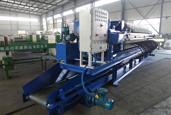 過濾、輸送壓濾機(jī)是在壓濾機(jī)濾板下方裝置了皮帶輸送,用于輸送濾板拉開時(shí)卸下的濾餅。該裝置適用于不易做基礎(chǔ)的工作現(xiàn)場(chǎng),可以把物料輸送到指定的地方,減輕了員工勞動(dòng)強(qiáng)度。